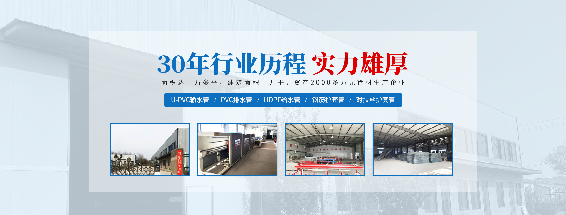 安陽(yáng)市祝豐塑化有限公司坐落在滑縣工業(yè)園區(qū),東臨大廣高速,西臨京珠高速,是鄭州、鶴壁、安陽(yáng)、濮陽(yáng)四個(gè)城市的輸紐,交通便利、環(huán)境優(yōu)美。 公司始建于八十年代,經(jīng)過(guò)二十余年的艱辛創(chuàng)業(yè),規(guī)模不斷壯大,由十多萬(wàn)元資產(chǎn)的小廠,發(fā)展到現(xiàn)占地面積達(dá)一萬(wàn)多平,建筑面積一萬(wàn)平,資產(chǎn)2000多萬(wàn)元管材生產(chǎn)企業(yè)。公司生產(chǎn)PVC-U、PVC排水管、HDPE給水管、鋼筋護(hù)套管管道通訊管材等產(chǎn)品,廣泛用于農(nóng)田節(jié)水、高山引水、人畜用水、建筑、電力通訊等多種用途,品種齊全。為了滿(mǎn)足用戶(hù)需求,可承攬各種給水、節(jié)水、灌溉工程?!白XS塑化”憑借強(qiáng)勁的實(shí)力,優(yōu)良的管理水平。“以質(zhì)量求生存,以信譽(yù)求發(fā)展”的原則全力以赴和大家共同塑造美好未來(lái)。..
